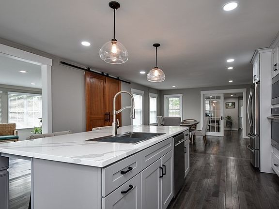 - Features: Flooring - Wood, Dining Area, Pantry, Countertops - Stone/Granite/Solid, Kitchen Island, Cabinets - Upgraded, Open Floorplan, Recessed Lighting, Remodeled, Stainless Steel Appliances, Gas Stove, Lighting - Pendant