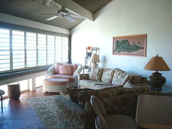 Lovely and bright 2-bedroom, 2-bath unit on the popular golf course level. This villa has few steps and lots of charm with custom entertainment center and remodeled kitchen. This unit has a beautiful water view and delightful patios. Brand new windows have just been installed in the living room and the two bedrooms. A great Caribbean retreat!
