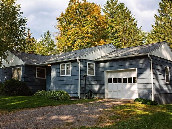 Village ranch with 1 acre lot. Spacious living room with picture windows overlooks the large back yard. Good sized eat in kitchen with wood cabinets and generous counter space. Hardwood flooring in the living room and bedrooms. Finish the walkout basement for a family room. Natural gas heat, public sewer and water.