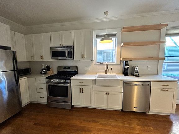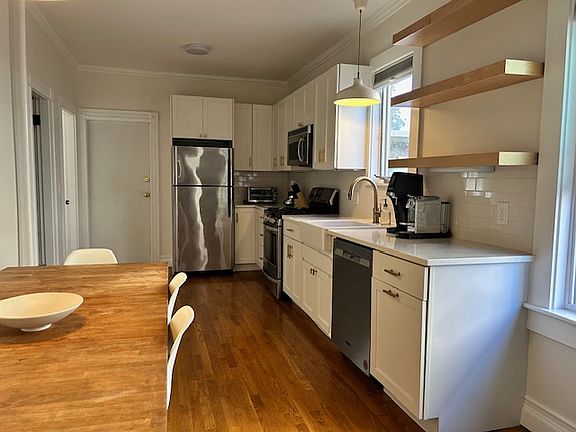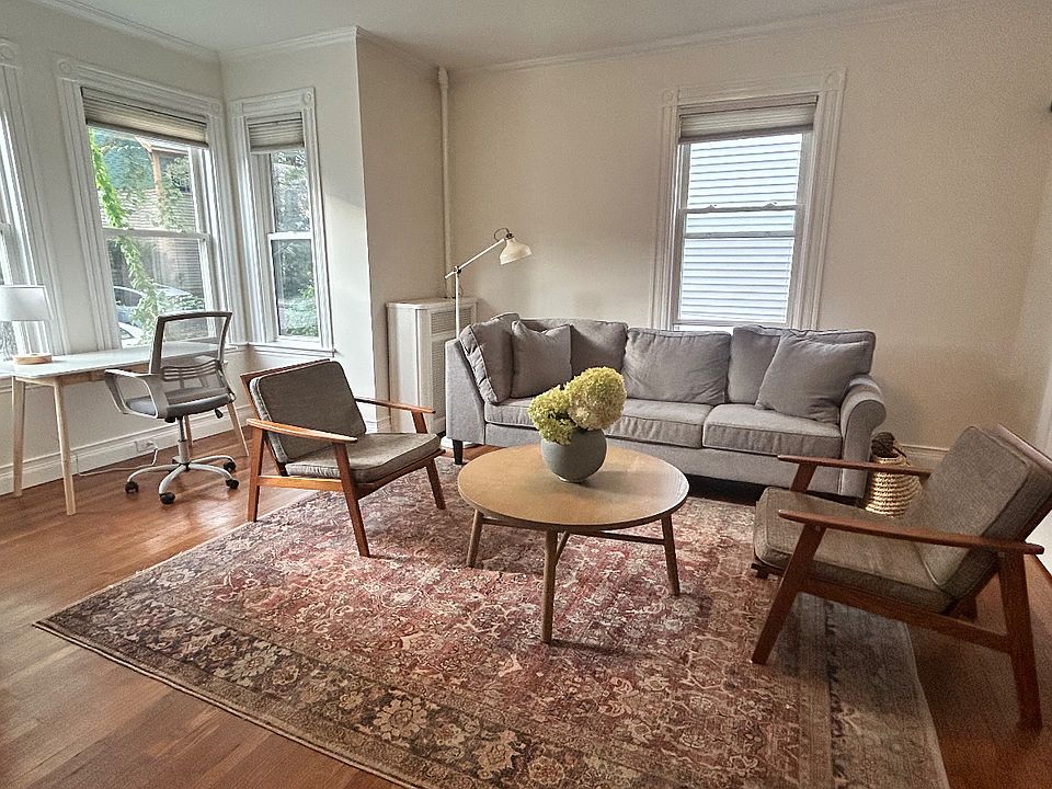 Gorgeous 2 BR in amazing Davis Sq location with 3-car private parking in the driveway. Fully renovated and newly updated - this pristinely kept 1st floor unit offers fantastic natural sunlight, beautiful hardwood floors, and a charming private front patio. The kitchen features white quartz counters and subway tile backsplash, stainless steel appliances and farmhouse sink. Private washer/dryer and ample storage available in the basement. Impeccable location - perfectly situated on a quiet residential side street, and only 2 minute walk to the Davis T stop, Somerville bike path, and all the great restaurants, cafes, and shops Davis Sq has to offer. And Pet Friendly! Call, text, or email for showings.
