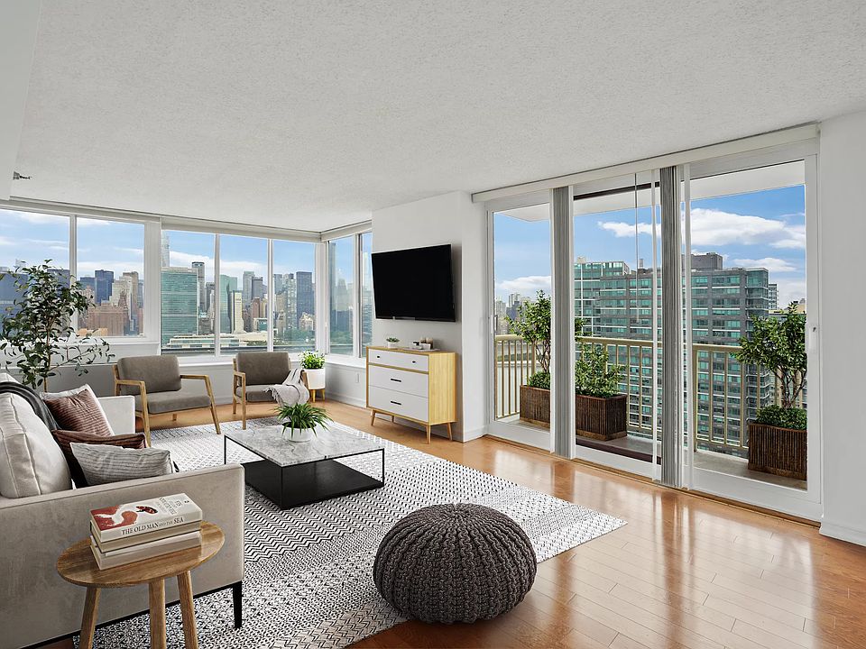 Citylights 29B - Convertible 3 Bedroom with Direct City And River Views Welcome to LIC!! Welcome to Long Island City! Turn the key and move right in! We invite you to schedule a private viewing of this newly renovated, bright, modern, mint condition, corner unit, convertible 3-bedroom, 2-bath Condop at Citylights, where you can enjoy breathtaking direct unobstructed Manhattan & East River views. This is one of only two buildings directly on the LIC waterfront with apartments available for purchase. This unit offers a spacious interior ideal for entertaining or enjoying quiet nights at home. Oversized, double-insulated windows invite you to enjoy incredible direct views of the NYC skyline, midtown Manhattan, East River bridges to Long Island City & beyond. Consisting of approximately 1050 square feet, this home has an efficient layout boasting a large living/dining room combo; hardwood floors throughout which add a touch of warmth; chef's kitchen boasts custom cabinets, complete with top quality Silestone Quartz countertops, new built in pantry, garbage disposal, stainless steel appliances featuring oversized sub zero refrigerator, Bosch dishwasher and profession grade burner stove with convection & warming/broiler ovens. Enjoy coffee while watching sunrises at the breakfast bar or catch the sunset with a glass of wine from your balcony Perfect for entertaining friends and family. Additional features include 2 beautiful spa-like bathrooms. Citylights, Long Island City's first luxury high-rise residence Total maintenance* of $3,923, is about 25-58% tax-deductible. *Maintenance is inclusive of building's real estate tax obligation. Please call for private showing. Citylights, Long Island City's First Luxury High-Rise Residence Citylights is Long Island City's first luxury high-rise residence, designed by famed Argentine-American architect Cesar Pelli. This Condop has NO BOARD INTERVIEW required. Enjoy the outdoor tennis court, FREE GYM - staffed & fully-equipped with 2 Peloton cycles, well maintained cardio machines and Star Trac Fitness Equipment, free weight room, yoga/workout studio, saunas, showers, and lockers. Building amenities also include a 24/7 doorman/concierge, a five-level indoor garage (residents enjoy a reduced rate of only $149/mo), a meeting room, and bike storage. Live in Long Island City - Minutes to Midtown! Enjoy famous NYC skyline sunsets from the comfort of your apartment. Join the VIBRANT NEIGHBORHOOD of Long Island City, close to shops, restaurants, and attractions. Visit the Michelin-rated Casa Enrique, M. Wells Steakhouse, Sushi Daizen, Maiella, R40, Bellwether, Little Chef Little Cafe, bakeries, bubble tea shops, day spas, and more. Enjoy direct access to the beautiful Gantry State and Hunters Point South Parks. EASY WALK to the Vernon Boulevard-Jackson Avenue 7 Train Subway with convenient access to E, M, G, and N, NYC Ferry service to Manhattan, and easy access to Long Island Expressway (495 LIE) and BQE. This exciting neighborhood is waiting for your arrival.