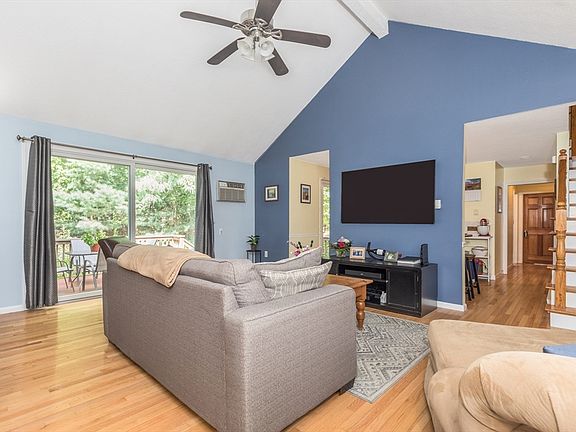 Don't miss this corner unit townhouse boasting 3 bedrooms in the highly desirable Acadia Condominiums. Cathedral ceilings, abundant natural sunlight and ample outdoor space make this condo feel large and inviting. As a corner unit, enjoy virtually private outdoor space that spans two deck areas abutting wooded landscaping. From the vaulted-ceiling living room, continue on to the eat-in kitchen with large island, perfect for hosting and entertaining. A bathroom and bedroom complete the first floor- ideal for anyone wanting first floor primary living space or a separate area for guests. Two bedrooms and a full bathroom make up the second floor. In the full basement, the unfinished side includes generous storage space, laundry, an extra refrigerator while the finished portion is perfect for entertaining, working out, and watching movies. These condos don't come up for sale very often, and as one of the only three bedroom units in the association, you do not want to miss out on this condo!
