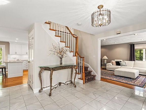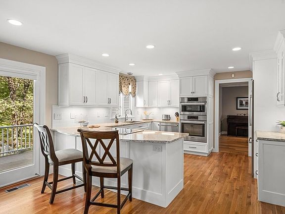Beautifully maintained Colonial w/many updates & quick access to RT 125 & 93 in new Bancroft School District. Marble foyer. First floor has gleaming hardwood floors. Living room w/bay window and back office w/french doors & custom built-ins. Formal dining room has large bay window. Totally remodeled white kitchen w/quartz counter, double convection ovens, one is also speed and microwave. Appliances are high end and stainless steel. Kitchen is open to large eat-in area w/brick wood-burning FP w/access to screened porch and deck. Large family room w/cathedral ceiling, skylights, wet bar, and large front and side picture windows. Upstairs are 3 large bedrooms and master suite. One bedroom has a walk-in cedar closet and double closet. Master suite has large walk-in closet and gorgeous updated bath w/granite counter/marble floor, double sinks, air tub, cathedral ceiling, crystal chandelier, large marble/granite tiled shower w/bench and rain head. Walkout Lower Level.