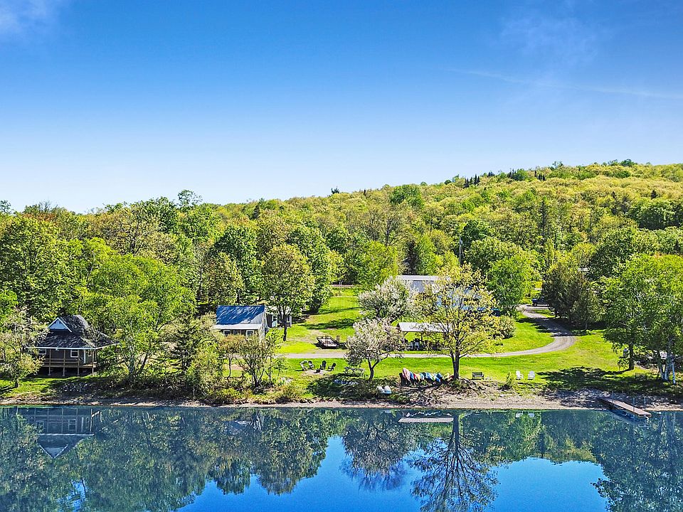 Unique and exciting opportunity to own a successful rental property on highly sought-after Portage Lake! This incredible property features 2.75 acres and has more than 400 FEET of gorgeous water frontage! The main residence, known as 'The Cottage', features a bedroom as well as a larger 'bunk-room'. This home also features a full bathroom with laundry and a large living area with windows overlooking the entire property. From there, make your way around 'Almond Drive' to three more smaller accessory cabins that have been completely remodeled with modern taste yet a maintained 'camp' feel. The three smaller cabins share a central 'Bath House' which has also been fully renovated into two mirror-image full bathrooms with a laundry area and utility room. The two larger cabins are nearly identical and both feature 2 first-floor bedrooms as well as an upper-level loft. The smaller cabin has a 'bunk-room' as well as a small kitchen and living area. Also on the property is a pavilion located near the waterfront, as well as an oversized garage with a second level. The second level of the garage was sectioned off to offer further future living space, but is currently only used as storage. An additional unit was also erected recently and is being offered unfinished for the future owner to finish as they see fit. A wonderful opportunity to live in the main residence while having income potential from the remainder of the property!