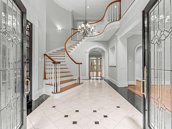 In a private, quiet cul-de-sac of Bunker Hill Village, this custom home sits on over 0.6 an acre. With a circle drive and motor court, there is an air of sophistication that exudes from the stately red brick home. The grand entry welcomes you with marble floors, high ceilings, spiral staircase and natural light throughout. The office wood paneling is distinguished & the rest of the home flows effortlessly with a formal dining and butler pantry w/ wet bar. The open kitchen features a subzero fridge, island with gas cooktop and ample storage. Step out of the french doors onto your covered patio with full mosquito mister overlooking a resort-style pool and outdoor kitchen or retreat to your oversized primary suite. Upstairs you will find a flex space for media or secondary living, four additional bedrooms with en suite or a shared Hollywood bath and built-in bookcase. Strategically located between downtown and the Energy Corridor and minutes from sought after schools. NEW ROOF 2022