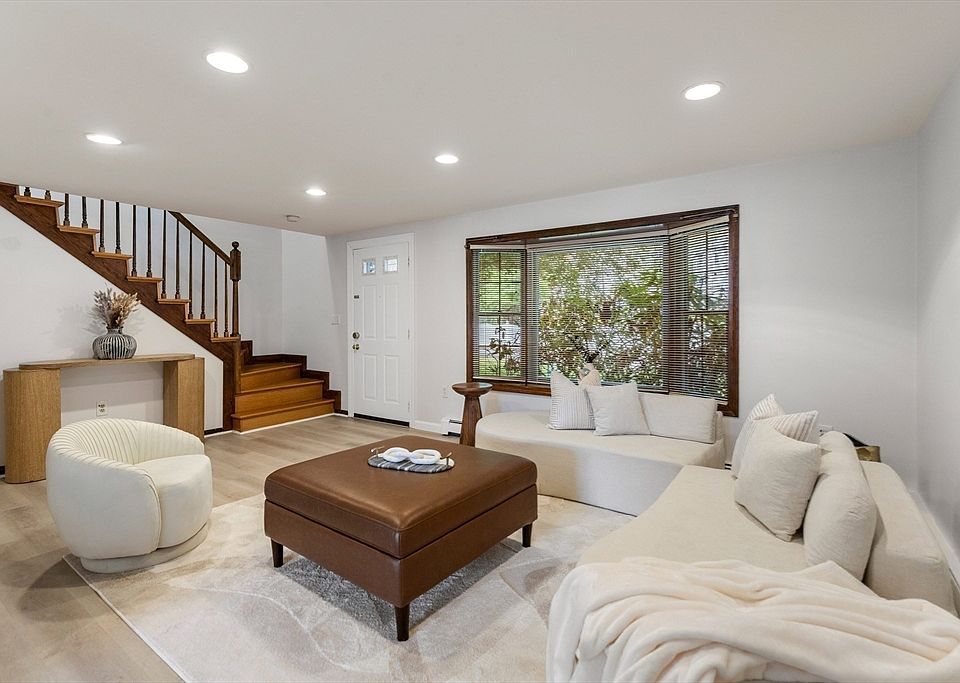 Linden townhouse tucked away on cul-de-sac in 9-unit, pet friendly Anderson Village with TWO parking spaces right at your back door! Beautifully 2023 renovated kitchen with new cabinets, stainless appliances, white quartz countertops, & vinyl flooring with dining area. A spacious living room with new vinyl flooring, closet, bay window, as well as refreshed 1/2 bath & laundry complete the first floor. The second-floor bedrooms are well-sized, including the airy primary bedroom with vaulted ceilings, skylight & balcony! The spiral staircase from the primary leads to the loft and makes a lovely office area or flex room & has additional storage space. There is a full bath with tub & shower on the second floor. Electrical panel updated in 2023 & Bosch high efficiency gas boiler (2015). Close to Logan Airport, Route 1, the Tobin Bridge, Linden School, Route 16, the bus-stop to Malden Center & Boston! Enjoy the nearby Northern Strand Bike Trail! This home is move-in-ready!
