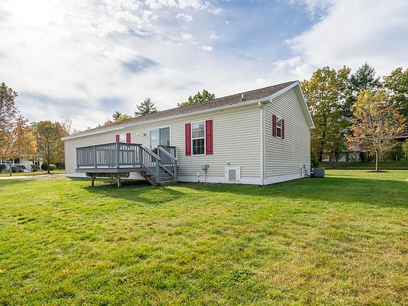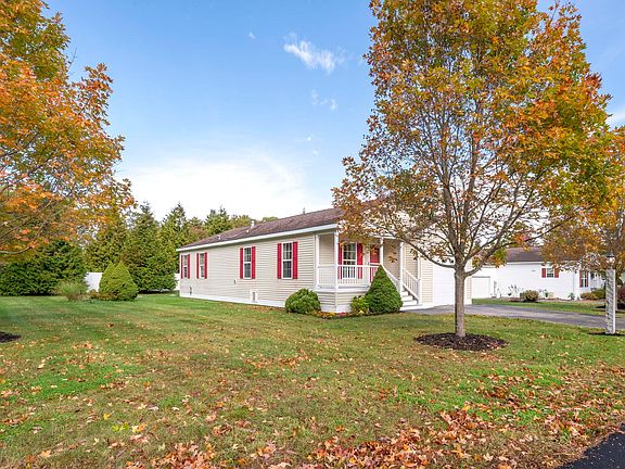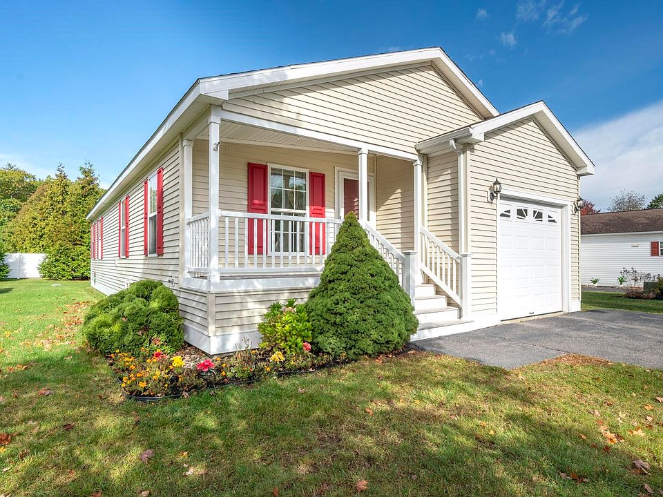 Welcome to Greystone Village - a desirable 55+ community on the gorgeous New Hampshire Seacoast. Well cared for home offering low maintenance, one level living. Enjoy your morning coffee on the charming east facing porch. Spacious living room with tons of natural light room leads to kitchen and adjoining dining room. Well appointed kitchen with center island, plenty of storage and pantry/utility closet. Sliders from the dining room open to the freshly painted deck - perfect for warm season enjoyment. Spacious primary suite with walk-in closet and private bath with shower. Both baths offer grab bars for easy accessibility. 2nd bedroom is perfect for guests or an office/den. Additional full bath and laundry center. Interior paint has just be refreshed. 1 car garage with stair lift for easy access. Wonderful location within minutes to the beautiful Seacoast beaches, shopping, golf courses and plenty of dining choices. Ready for the movers! Park approval required....OPEN HOUSE ~ Saturday, 10/18 ~10am-12pm.