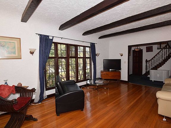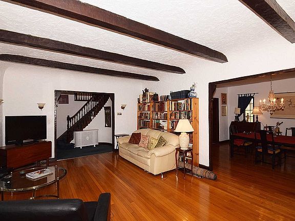 Beautiful,Sunny,1Of A Kind Grand Tudor W/5 Beds &3.5 Baths.Hardwood Floors.Formal Dining Room,Formal Living Room w/ Fireplace.Upstairs:French Doors Lead You To A Vaulted Entertainment/Piano Room w/Fireplace.Master Suite w/En Suite Study & Full Bathroom,3 Additional Bedrooms+Full Bath.Finished 3rd Floor Features Large Bedroom w/Full Bath,Cedar Closet & Plenty Other Closets.Young Roof,Private Office W/Sep Entrance.Yard Features Stone Patio & Stone Fire pit.Quiet Street.Close to LIRR/Bus/Hwy.