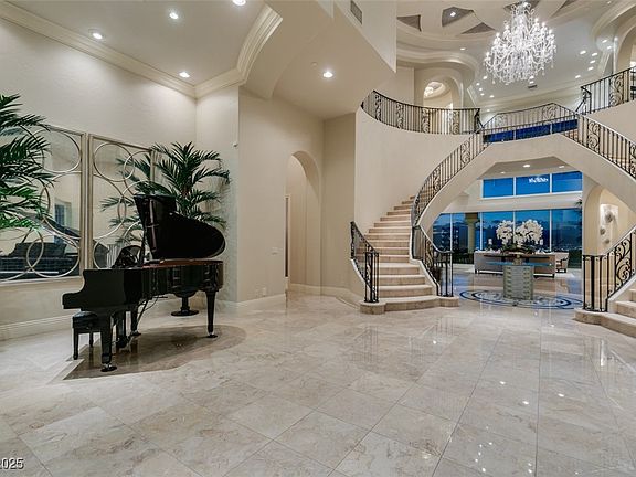 Step into a world of luxury w/ this mesmerizing masterpiece in prestigious Anthem CC.This fully furnished home offers full Strip & mtn views!With 6 beds/8 baths on just under a ½ acre,this home boasts top-of-the-line finishes & expansive pocket doors creating seamless indoor-outdoor living.A stunning floor-to-ceiling granite fireplace,w/ambient backlighting,captures attention in the formal living room.The island kitchen is equipped w/Wolf appliances,butler's pantry & temp-controlled wine room.Entertain guests from the indoor/outdoor wet bar w/pocket slider windows & ice maker for patio cocktails.The pavered loggia features an outdoor kitchen & entertainment area to enjoy the Vegas skyline.Imagine movies in the private theater or take the elevator & explore the ensuite bedrooms (incl. 2 masters).“Honey,stop the car” has new meaning the moment you see the stunning porte-cochere & circular drive w/an oversized 4-car garage.This exquisite custom home offers unparalleled luxury & style.