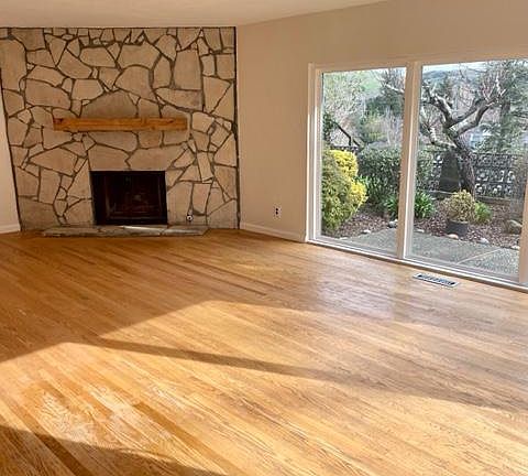 Updated 3 bedrm/2 bath home in desirable Scott Valley. Living room w/ fireplace, updated kitchen w/ counter opening to dining room , slider to rear deck. Family room w/fireplace opens to rear deck and yard. The 3 bedrms all have mirrored sliding closet doors with built in drawers. Freshly painted. Hardwood flooring. Double paned windows. 2-car garage w/additional refrigerator and washer/dryer. Easy access to schools, the popular walking/bike path, shopping & transportation. Plus lovely views! A great place to call home! No smoking, No pets. Owner will take care of landscape maintenance.