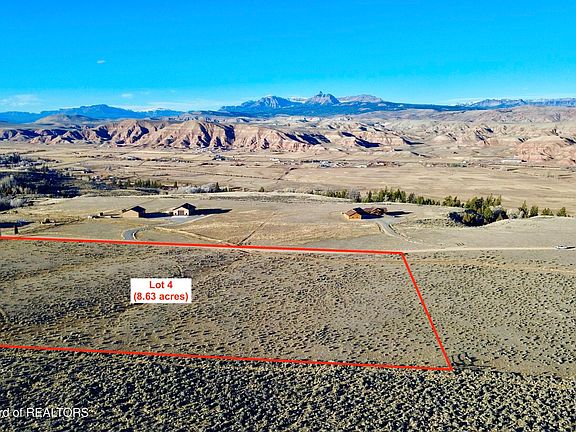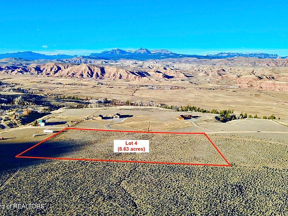 Build your Wyoming dream on this beautiful 8.63-acre parcel with wide-open views of Ramshorn Peak and the Upper Wind River Valley. Set on a private, level bench, it's ideal for your home, horses, and outdoor adventures. Irrigation water rights are included, with a natural spring and the property borders a large private ranch with Shoshone National Forest and BLM lands nearby for endless exploration. Just minutes to Dubois, a short drive to Grand Teton National Park and 90 miles to Jackson Hole or Yellowstone. Owner financing available. Lot 5 also available for a total of 16.91 acres.