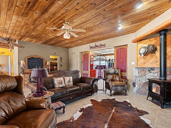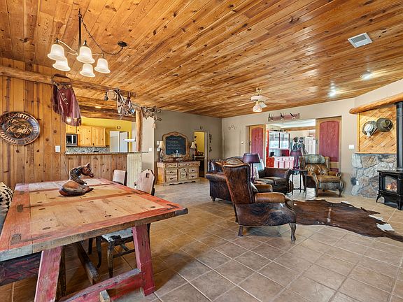 Equestrian Dream Property. This stunning 4-bed, 2-bath southwestern ranch home on 5.1 fully fenced acres with an indoor arena is a horse lover's Desire! The spacious kitchen features stainless steel appliances, granite countertops, and vigas on the ceiling. The cozy living room has tongue-and-groove ceilings and a gas stove. Radiant in-floor heat ensures comfort throughout. The master suite includes a luxurious bath with a Jacuzzi tub and double-head shower. The property also has a heated sunroom, backup Generac generator, and horse facilities, including a 66' x 80' indoor arena w/ entire east side ''hangar'' door that opens up to outdoor arena, 5-stall horse barn, multiple turnout pens, a 40' x 60' shop and 2 RV plug-ins. Community Water and Natural Gas. See attached Amenities List!