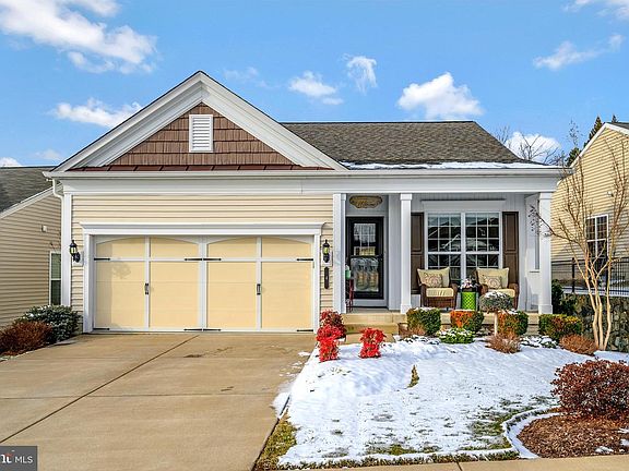 Rare find: If you're looking for a "WOW!" factor, this house has it! Be the first to see this beautifully customized home in Celebrate, a Dell Webb 55+ community located in Stafford County. Artistry, unique design, and impeccable craftmanship are evident in every area of this 2632 square-foot home. The kitchen, dining area, family room, laundry room, master bedroom and bath, second bedroom and hall bath are located on the first floor. The galley kitchen is complete with ceramic countertops, gas range, and bountiful cupboard space. The large, open floor plan in the living area provides versatility to arrange the dining area and family room to suit your needs. The outdoor deck, with easy access from the living area, provides even more room for family fun or entertaining. Beautiful, intricately designed tray ceilings in the living area makes this home truly unique. Hardwood and tile flooring, 9' ceilings, wainscoting, built in shelving, and artisan's walls create eye-catching design throughout the home. From the laundry room located near the kitchen to the the first-floor bathroom near the 2nd bedroom, convenience is the hallmark of this floorplan. The master bedroom, bath, and walk-in closet with custom shelving, provide an elegant retreat from the main living area. Hardwood stairs, with hand crafted pickets and newel post, lead to the lower level of the home. The media room is complete with tiered seating and plenty of room for a family movie night or to have friends over to watch the big game. If you need some alone time, retreat to the corner nook, complete with a daybed. A cozy outdoor sitting area adjacent to the nook provides even more privacy. The original floor plan of the home allowed for a roomy, 3rd bedroom suite: This area is currently utilized as a cozy pub. In addition to a seating area, the 12' x 3' built-in bar offers plenty of room for guests to gather. A convenient full bath completes the finished living area on the lower level of the house. In addition, a large unfinished area houses the furnace and a large storage room. The house is strategically situated on the lot to allow a large, grassy area to abut the patio behind the house. Tasteful landscaping and brickwork create a buffer between this lot and the community at large, giving the home an "oasis" atmosphere.
