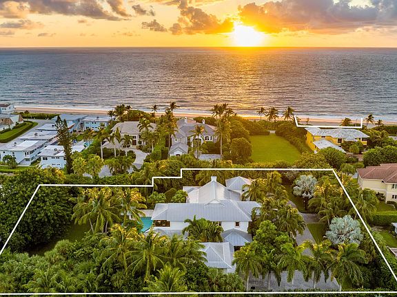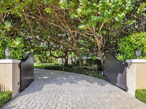 This private coastal estate includes a beach lot with over 140 feet of oceanfrontage. Situated on a quiet cul-de-sac, the gated compound boasts over 1.25 acres. The main house offers vaulted beamed ceilings; imported carved wood pillars; wide plank walnut floors; wraparound lanai; and sliders that invite indoor outdoor living. Other features include six total bedrooms; full-service kitchen with butler's pantry; primary wing; guest house with separate entry; and theatre room. Enjoy the tranquil grounds with coral stone pathways and terrace; heated saline pool with spa; and separate pavilion for outdoor dining and cooking. The beach parcel is located across Old Ocean Blvd with private deck and over 140 feet of direct oceanfrontage. There is truly nothing like this luxury compound. FEATURES: