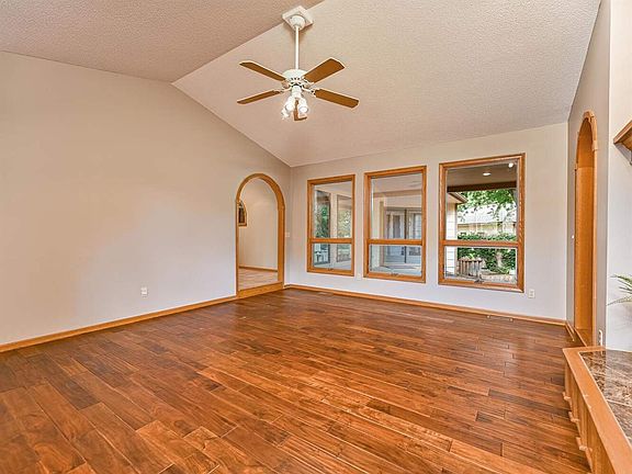Beautiful home located in Goddard KS. in desirable Beaver Creek Neighborhood. This custom built one owner home has so much to offer! Over 2,500 sq ft on the main level with 4 bedrooms and 4 full bath. Perfect for a large family or perhaps a MIL Suite! Hard-surface flooring throughout the main level would be great for someone with allergies or lot's of pets. The eat in Kitchen features granite counters, tons of Cabinets with pull outs, built in desk, island and eating bar. 1/2 bath just off the kitchen. Formal dining room. Living room with built in shelves and fireplace. Just off the living room you will find the master suite with his and her's Master baths and walk in closets. (Potential for wood burning stove in master) Access to the covered deck for your morning coffee. 2nd & 3rd bedroom with a jack & Jill bath. 4th bedroom on main level with Hollywood bath. Downstairs you will find a view out walk out basement that features 2 additional rooms both could be bedrooms. (No closets). Large family room/rec room with wood burning stove, Built in shelving for TV and storage. All bathrooms have granite counters and tile. Large storage room with egress window, could be finished out for additional living space. Out back you will love the large deck with hot tub. Fenced backyard. 44x28 heated detached shop. Rural water available. Don't miss out on this beautiful home!