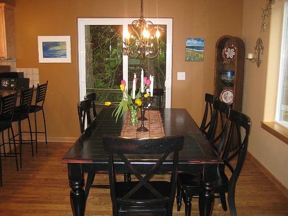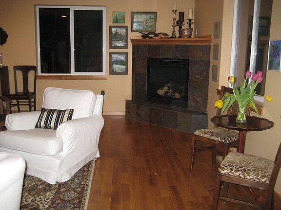 Superbly maintained, quality home built in 2006 with Hardie Board siding on level lot, quiet setting. Nicely landscaped w/greenbelt and creek in back. Front Trex deck to wood and tile floors on first level lots of windows for forest views, kitchen with stainless appliances, under cabinet lighting, eating bar with dining and living rooms in an open floor plan. Bedrooms upstairs with a bonus room that could be a fourth bedroom. Master bedroom with walk in closet, full bath and double sinks.