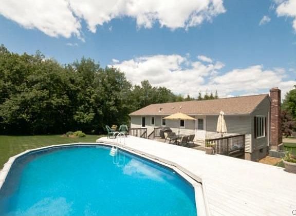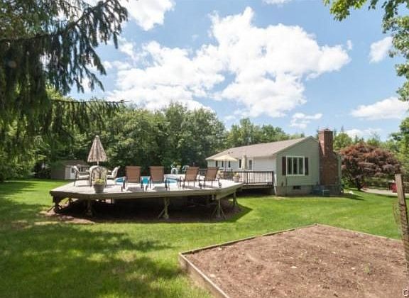 For more information on this property, contact William Raveis Real Estate, Mortgage & Insurance at 1-888-699-8876 or contact@raveis.com. How Sweet it is!! Warm & inviting Ranch with so many beautiful updates on a lush acre lot in a terrific neighborhood ..Newer roof, siding,& windows, Hardwood Floors throughout,and Central Air.Updated Eat in Kitchen,Formal Dining room, Cozy Living Room w/ Fireplace, Three good sized Bedrooms, and two full Bathrooms make this a comfortable home. An oversized deck is perfect for entertaining.