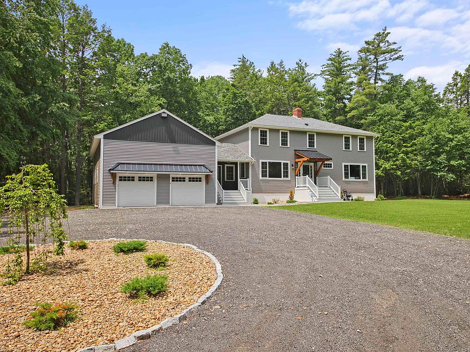 RARE opportunity to own this COMPLETELY RENOVATED, truly stunning 4+ bedroom, 4 full bathroom Colonial on over 4.7 secluded acres. This home is beyond impressive with attention to detail in every corner. Featuring hardwood floors throughout the 4000+ square feet, an oversized heated garage, large mudroom w/ built ins, a breathtaking chefs kitchen with 9 foot center island, GE Profile Cafe series appliances, farmers sink, custom cabinets, wine fridge and quartz countertops. The perfect home for entertaining with a formal dining room w/ French doors & wainscoting and a gas fireplace in the sundrenched living room. Thoughtful details in the full bathrooms with smart mirrors, tiled floors and beautiful finishes including a luxurious spa style bathroom in the en suite primary bedroom. Spacious bedrooms with walk-in custom closets, conveniently located second floor laundry hook ups and MORE. Need more room? The NEWLY finished basement will impress with a huge bonus space with wet bar featuring a brand new butcher block countertop and cabinetry, an exercise room, full bathroom and additional bedroom potential. All newer mechanicals including a brand NEW Rinnai on demand water heater, standby generator and pellet stove in the lower level. Outside, an oversized composite deck overlooks a heated in ground gunite pool w/ hot tub. The shed with power and new chicken coop make this the perfect NH yard! Don't miss this truly special home!