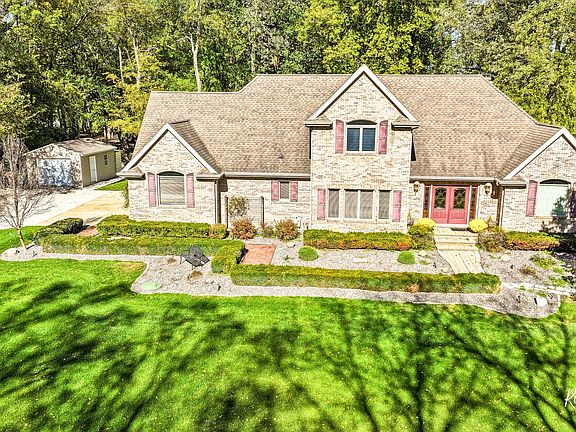 Welcome to this gorgeous custom-built home found quietly tucked away on over 2.5 acres of wooded land and right on the Kankakee River! Stepping inside you are greeted with high cathedral ceilings, warm wood feels, and an open floor plan that's flooded with natural lighting throughout. The sunken living room features a beautiful wood burning fireplace and flows right into the kitchen. The stunning kitchen has all stainless-steel appliances, ample maple cabinetry, oversized island with granite countertops, and attached dining room-- making it an ideal space for entertaining. The primary bedroom is a true retreat, having private access to the back deck, walk-in closet, and a spacious ensuite bathroom with separate shower and soaking tub! Large first-floor laundry/mud room and bathroom too. The upper level provides an open loft for an office or more living space. Around the corner are three additional bedrooms, all great in size, that share a modern guest bathroom featuring a stylish tile surround tub. The exterior is a statement piece in itself, offering professional landscaping, outdoor natural scenery from the massive deck that leads to a one-of-a-kind paver fire pit, all overlooking mature trees, and extending right to the river's edge. That's not all, enjoy a spacious 3-car attached heated garage and an outdoor 16X20 shed for storage, hobbies, you name it! This piece of paradise is waiting, so call TODAY to schedule your private showing.