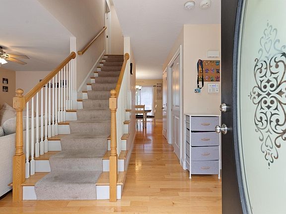 YOUNG Colonial you have been waiting for!!! Enter through the front door where you will meet bright living room with recess lights, fireplace, and hardwood floors, adjacent to the living room is the large eat in kitchen with granite countertops, stainless steel appliances, half-bath, with laundry room, and dining room which currently is being used as one of the playrooms. Walk up the stairs you will find a generous primary suite, with walk-in closet, and full bathroom, three more bedrooms and full bathroom complete second level. If all this wasn't enough the basement has been finished for you to use for your enjoyment. The backyard is fully fenced in with a patio and deck area with swing set and storage shed and time to enjoy this for summer. Two-car garage, security system, sprinkler system, tankless water heater and young systems. Close proximity to Route 1, shopping and restaurants.