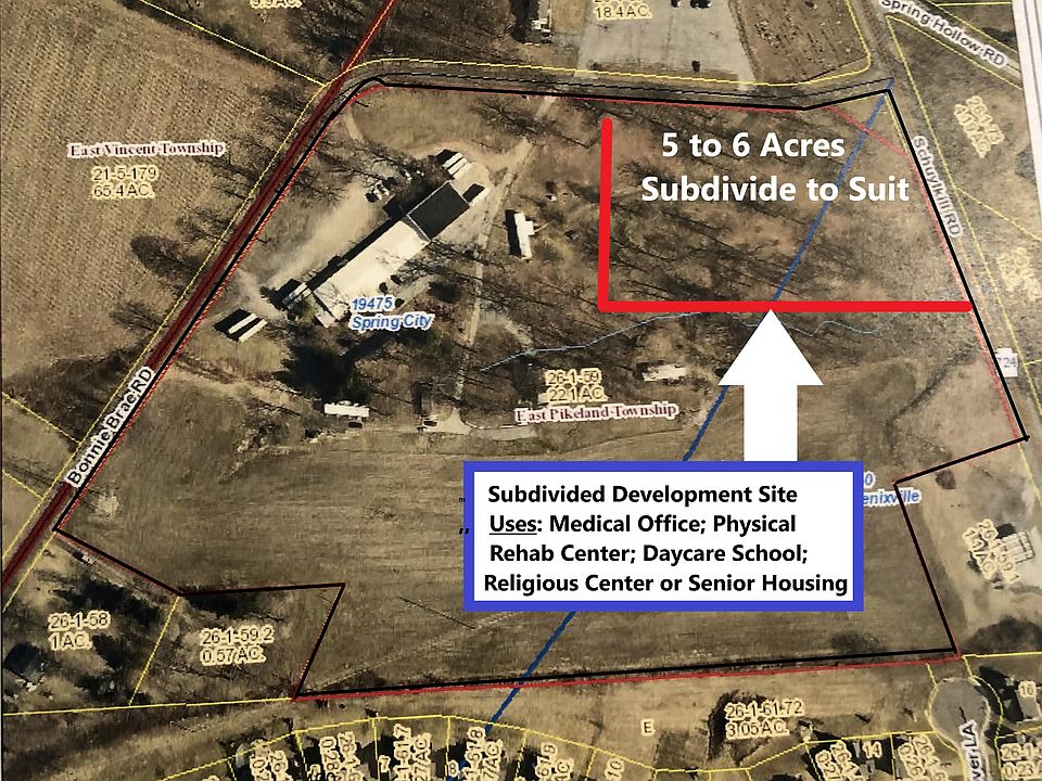 This subdivided 6.0 acre front corner commercial parcel with over 300 feet of frontage on PA-Route 724. This R-2 zoned lot, is perfect for a commercial developer looking to build a senior housing center, medical office, physical rehab center, religious center and/or daycare center for children. There are over 400 new single-family homes being built within a quarter mile radius of this front subdivided parcel.