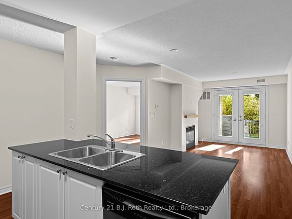 Welcome to your year round retreat in Collingwood! This beautifully maintained main-floor condo offers approximately 800 sq ft of bright, open-concept living just steps from the Georgian Trail. The spacious kitchen features granite wrap-around countertops, stainless steel appliances, and granite island overlooking the inviting dining/living area with a cozy gas fireplace. Enjoy carpet-free living, a generous primary bedroom with 4-piece ensuite, plus a convenient powder room off the den. Step outside to your private patio with natural gas BBQ hookup and peaceful treed backdrop perfect for morning coffee or evening unwinding. The unit has been freshly painted and is ready for you to enjoy as a vacation or full time home. Exclusive use locker just outside your door provides ample space for bikes and ski gear. Amenities include a year-round outdoor saltwater pool and clubhouse with library and social space. One assigned parking space plus visitor parking. Minutes to downtown Collingwood, Blue Mountain, ski hills, golf courses, and Georgian Bay - this truly is an outdoor enthusiasts dream or the perfect place to simply relax and enjoy life surrounded by nature.