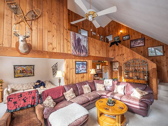 A rustic and woodsy Vermont chalet, but with modern comforts, just down the street from Mount Snow. This private yet easily accessible lot has direct snowmobile trail access, nearby dining and shopping, and easy public shuttle service to the mountain. The home features a large vaulted great room, exposed natural woodwork throughout, wood burning fireplace, great natural light, a kitchen and dining area with nice storage, a main floor full bath off the large living room, mudroom entry for gear, 3 bedrooms upstairs with a large full bath, lower level family room, kitchenette, and laundry, as well as 4th bedroom (not with legal egress). There is a deck for entertaining, and recent upgrades to the water and heating systems. The home has plenty of room to stretch, without being too much to maintain. Enjoy a quick drive to skiing, or on off-days take a jaunt into town.