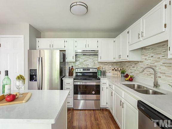 You'll LOVE this rare basement home with a HUGE walk up attic! FRESH INTERIOR PAINT, NEW FIXTURES, NEW CARPET, NEW QUARTZ COUNTER TOPS IN KITCHEN, WHITE cabinetry, NEW TILED BACKSPLASH & NEW SS APPLIANCES. 3 Beds, 2 1/2 Bath. Go out back to relax on the home's TWO decks plus patio overlooking the private yard. Enjoy the extensive network of hiking trails that Woodcroft & the American Tobacco Trails offer. Close to Duke, UNC, RTP, I-40, RDU Airport & Streets at Southpoint. One Owner. Welcome Home!