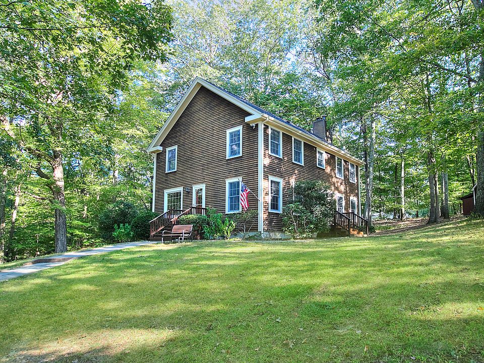 For the first time on the market, this farmhouse colonial was built by its carpenter/builder owner and has been exceptionally maintained. Nestled in a serene cul-de-sac neighborhood, the home blends timeless craftsmanship with modern updates, including a brand new 2024 roof, newer furnace, central A/C, hardwood floors throughout, whole house generator hook-up, and super insulation. The first floor features a spacious eat-in kitchen with an island for extra counter space and storage, a formal dining room with oversized windows, a cozy family room with a wood burning stove/fireplace, and a custom-built home office. Upstairs are three generously sized bedrooms, laundry, and two full baths. The primary suite offers a jacuzzi tub, walk-in shower, linen closet, vaulted ceiling, and his and her closets. An oversized attic provides additional storage. The finished lower level includes a full bath and two large rooms, currently used as an exercise room and a movie room. Outdoor living shines with an extra large deck for gatherings, sunset views, mature landscaping, and peaceful wooded surroundings. Many outbuildings for extra storage needs. With its central yet private location, this is a rare opportunity to own a truly special home.