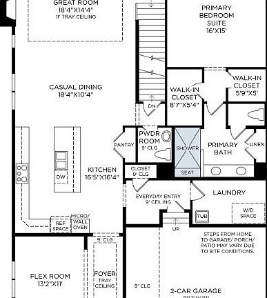 Covered porchGlass-enclosed shower with seatTray ceilingGreat roomPrivate guest bedroomPrimary bedroom suiteLarge center island