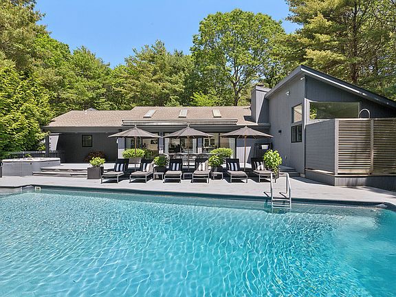 ward winning one level Modern home located in the heart of East Hampton's Northwest Woods! Features include 4++ bedrooms, 4 full and 2 half bathrooms, and a stunning open floor plan with fabulous entertaining spaces throughout. Renovated from top to bottom, the double height great room with fireplace opens to the dining area and striking kitchen with top of the line appliances. A wall of sliding doors makes entertaining easy and provides a seamless flow between inside and outside. The first floor primary suite offers a stunning spa-like bathroom with steam shower, radiant heated floors and a private outdoor shower. The office and den/media rooms provide additional bonus space. The lower level completes this amazing offering and presents a spacious recreation/gym area with half bath. The large exterior dining area with automated awning abuts the heated pool, hot tub, two outdoor showers, fire pit, and professionally landscaped grounds. Plus there is an oversized two car detached garage. For those who enjoy a sense of design and style, this home has it all!