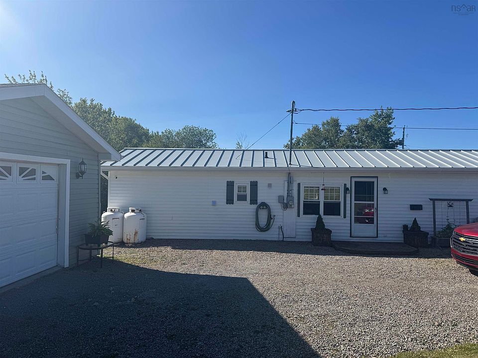 Charming Two-Bedroom Mini Home with Garage on a Private Lot Tucked away on a quiet dead-end street, this well-kept two-bedroom mini home sits on two maintained property parcels totaling approximately ¾ of an acre. The grounds feature multiple raised garden beds—perfect for anyone with a green thumb. A wired 16’x 24’ single garage provides great storage or workshop space. The home has received important updates, including a new steel roof, fresh tie-downs, and secure attachment to wood and concrete blocks. Heating options are flexible and efficient with electric baseboards, a propane furnace, and a cozy propane fireplace. Inside, the kitchen is the true heart of the home—spacious, open, and central. A bonus transition area connects the entry to the 4-piece bath and the comfortable primary bedroom with laundry closet. The living room, complete with the propane fireplace, offers a warm and welcoming spot for the chillier seasons. A second bedroom is located at the front of the home, completing this inviting layout.