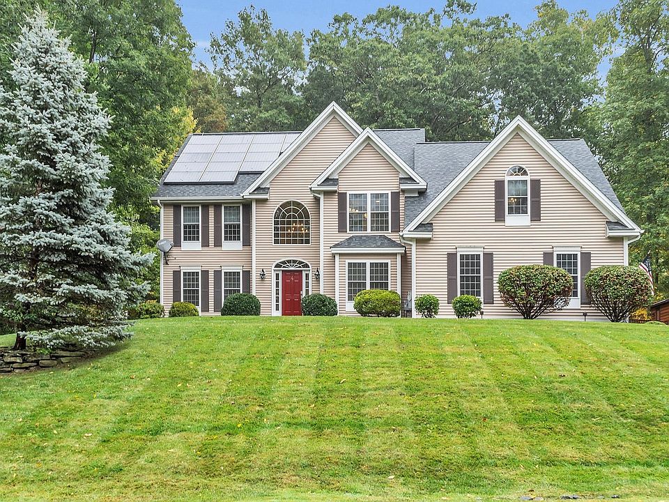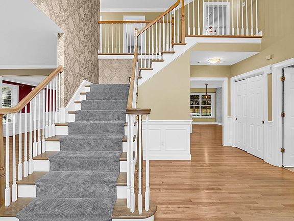 Exquisite Colonial located in Fieldstone Woods, on a cul-de-sac. As you step into the grand entrance, you are greeted by a magnificent, curved staircase and gleaming hardwood floors. The remodeled gourmet kitchen is a true culinary masterpiece, with top-of-the-line appliances and a generously sized quartz-topped center island that is every chef's dream. The kitchen seamlessly transitions into the vaulted great room, where abundant natural light and a wood-burning fireplace create a warm and inviting ambiance. Directly accessible from the kitchen, the three-season sunroom offers a delightful space for relaxation and unwinding. The main bedroom suite is a private sanctuary, featuring a vaulted ceiling, a spacious sitting room with doors, and an en-suite bathroom with double sinks and a luxurious jetted tub. All four bedrooms and foyer staircase have new, plush carpeting. The third-floor walk-up bonus room provides a versatile space for various needs. The finished basement, complete with a full bath and ample storage, offers additional living and recreational space. Notably, the home features a new roof and energy-efficient Tesla solar panels, ensuring both sustainability and cost savings. The fenced backyard is enhanced by a sizable gazebo, providing an idyllic setting for outdoor enjoyment. With many updates and meticulous attention to detail, this property is a rare find and an exceptional opportunity for discerning homeowners.