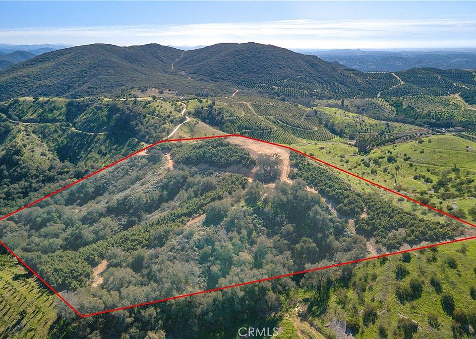Financing Available – Stated income loans with as little as 15% down and a 10-year fixed rate for qualified buyers. Nestled at the end of a private cul-de-sac, this extraordinary property features a professionally managed grove of 900+/- Hass avocado trees, ranging from 8 to 11 years old, set against a backdrop of breathtaking 360-degree panoramic views. Enjoy sweeping vistas of Palomar Mountain, San Jacinto, and even the Pacific Ocean. A large, rough pad with a gently sloping driveway provides an ideal site to build your dream home, with ample space for a guest house or workshop. The property is graced with mature oak trees, adding charm and shade to the landscape. With a 2-inch water meter, underground power, and phone utilities conveniently located at the street, this serene and private oasis is perfectly positioned to bring your vision to life.