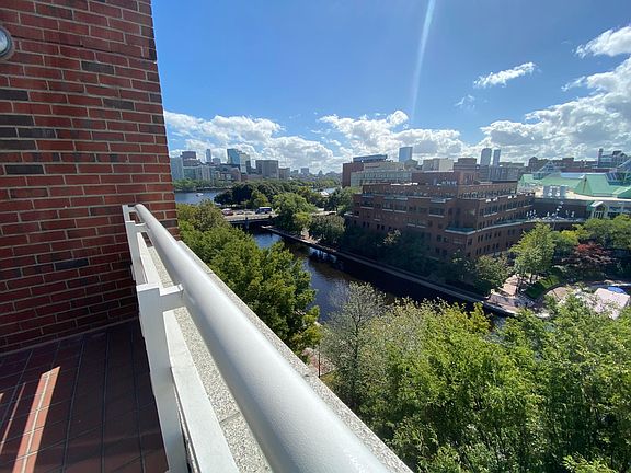 Luxury penthouse one-bedroom apartment with 1 Garage parking spot included. Waterfront building, Thomas Graves Landing, East Cambridge near MGH & MIT. Spectacular views of Lechmere Canal, lagoon, Charles River, Cambridge, and Boston skyline - watch Fourth of July fireworks from Private balcony. Unit includes wood-burning fireplace and skylight. Large bedroom; walk-in closet. Furniture negotiable including leather sofa and loveseat and mounted TV. Washer and dryer in unit. Near Lechmere MBTA stop, Museum of Science, and downtown Boston; easy access to major highways. Guest parking in front of building. 24-hour concierge, exercise room, function room, outdoor swimming pool, sauna, and Jacuzzi. Rent includes water, hot water, and heat. Tenant responsible for electricity, internet and renter's insurance. Available Nov 1. Min 1 yr lease. first and last and security deposit required.