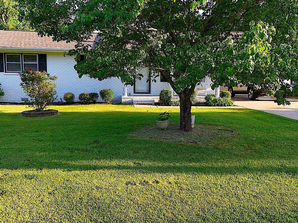 Call this one home today! Updated 4 sided brick ranch on level lot, fenced back yard with workshop/storage building. Features include 3 bedrooms, 2 full baths, fresh paint, updated light fixtures and ceiling fans, lvp flooring, custom ceramic tile bathrooms with updated vanities, formal living room or perfect home office, great room with brick fireplace, formal dining area, white kitchen with granite counter tops, white electric range and refrigerator, stainless steel microwave. Located off the great room with will discover a covered patio area perfect for entertaining. Do not miss this one!