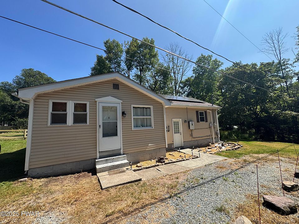 Very nice home on the outskirts of Honesdale and located within walking distance to Lake Cadjaw. Home has a Generac home solar generator and solar panels plus a tankless hot water heater. Enjoy 2 bedrooms with smaller areas that could be turned into a 3rd bedroom for the growing family. Home features 1.5 bathrooms, including a half bath off the kitchen. Combined living/dining space and an office. Primary bedroom is HUGE and has a laundry area, large hallway and a full bathroom. Home has 2 separate basement/storage/utility areas for all of your storage needs. LOW Taxes, Great School District, Move in Ready!