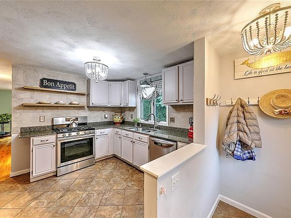 SUN-SPLASHED & SUMMERY 3 bed 2 bath contemporary cape on a cul-de-sac in South Warren, minutes to the downtown shops and Historic Waterfront District! Quick walk to Burr's Hill Park & the Warren Town Beach down Bridge Street...Great location! Sparkling white kitchen with stainless appliances, (propane gas for cooking) pretty hardwood floors throughout, insulated windows, two wonderful updated bathrooms and more! Fabulous oversized deck overlooking the fenced yard, adorable potting shed! The house was built in 1995 and is in terrific condition throughout!.. Of note: 9 year old roof, Generac whole house generator, economical well water, solar panels owned and fully paid, AND a toasty pellet stove in lower level. Just move in and enjoy... (Closing must be the week of December 26th, 2023)