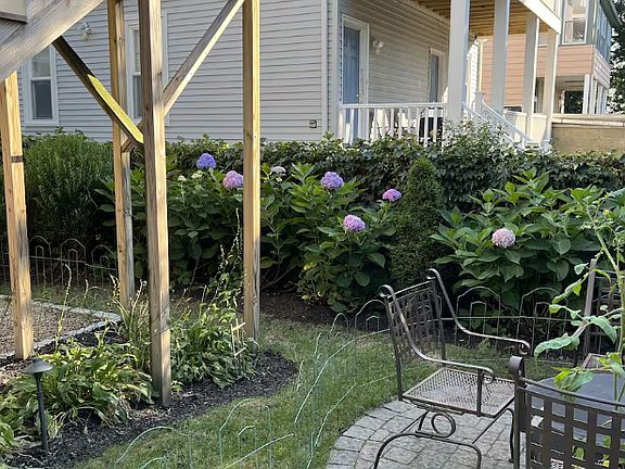 Private backyard oasisRelaxing hot tubLush flower gardens