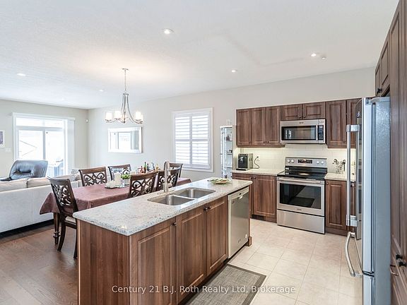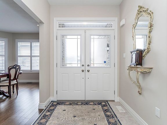 So much space, so much style this home truly delivers! Step through the grand double-door entrance into a spacious foyer that sets the tone for the 1,826 sq ft (exterior measurements) of thoughtfully designed living space above grade. With 3 generous bedrooms and 2 full bathrooms, this home offers the ideal blend of functionality and comfort. The main floor layout is perfect for entertaining, featuring a formal dining room for special occasions, an open-concept kitchen with an informal dining area, and a bright, welcoming living room with gas fireplace and a walkout to a 15 x 10 back deck where you can soak in a glimpse of serene evening sunsets. The mudroom/laundry room with direct access to the garage adds convenience and practicality for busy families. The fully finished basement is an entertainers dream, offering a spacious recreational or games area, cozy family room with a gas fireplace and wet bar, 4-piece bath, an additional bedroom, cold room, and ample storage. Hardwood and ceramic flooring run throughout the main floor and laminate flooring in the basement. The primary ensuite boasts double sinks and a walk-in shower for a spa-like retreat. The attached garage is insulated, featuring oversized 8 wide x 9 tall doors, perfect for larger vehicles or hobbyists. Located in a completed newer subdivision, this home offers quick access to major highways and is just a short drive to amenities. Plus, it's perfectly situated for year-round recreation to swim in Georgian Bay, bike or walk the Trans Canada Trail, ski, golf, or explore countless outdoor adventures nearby. Live, work, and play in the heart of Georgian Bay where lifestyle meets location. Great area to raise your family.