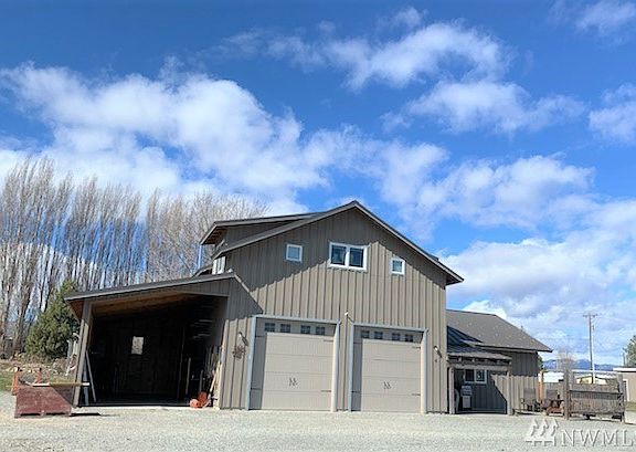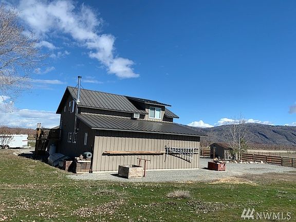 Omak-Incredible View of Tiffany's-Close to Town-Home features 1 bedrm/2 bathrms, kitchen w/ all appliances & island, great rm area includes living rm w/ vaulted ceilings & ceiling fan, dining area, & office spot w/ built-in desk. Both a shop w/ wood stove & half bath plus separate 2 car garage. Covered patio area 4 BBQ. Attached large lean-to for storage & RV parking. Barn w/ unique horse window, hay storage, & tack shed. Completely fenced. Landscaped w/ drip system. $236150 MLS-1428728 H-2708