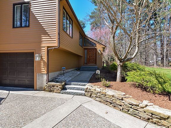 Amazing, one-of-a-kind, contemporary style home situated on 1.2 glorious acres of land on quiet cut-de-sac. Spectacular landscape surrounds the entire property with flowering trees, bushes, plantings and stone walls. Enter through the solid mahogany, front door into the spacious foyer with double closets and ascend the wide staircase to a cathedral ceiling family room with raised hearth, brick fireplace and sliders to a 12 x 24 fully screened back porch overlooking the private,Goshen Stone patio, fire pit & in-ground heated pool with waterfall feature! Kitchen boasts solid wood cabinets, granite counters and matching SS appliances. Spacious & restful primary bedroom with picture window and lovely, renovated, tiled bath. Lower level features family room with 2nd fireplace, exercise room, half bath and garage under. Additionally there is a detached 2 Car garage with potential for a room above. Custom designed with quality and character by original owner/builder. A true gem of a property!