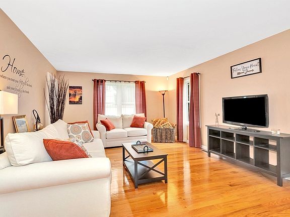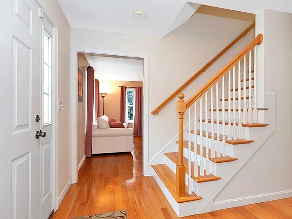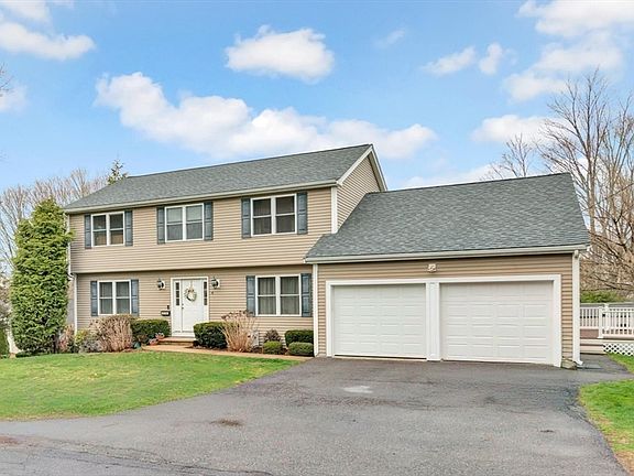 Welcome home to 4 Clovelly Lane! This stunning, young colonial is nestled on a beautifully landscaped lot with mature plantings & located in a super convenient neighborhood location near parks, Learned Pond, shopping, highways, commuter rail & more! First-floor features include a large front-to-back living room w/gleaming hardwood floors, stylish dining room & chef's kitchen with cherry cabinets, granite counter tops & a two-tiered island w/extra cabinetry & bar seating, stainless-steel appliances & pantry. The kitchen flows into a family room with cathedral ceiling and access to a large deck perfect for entertaining. The second floor has a spacious primary bedroom with ceiling fan & light, good sized closet & full bath w/shower. Three additional bedrooms w/good closet space & a 2nd full bath with tub & shower. Bonus features include a huge walk-out lower level for extra finished space or storage, a second driveway & two-car garage. Nicely maintained. Quick closing possible!
