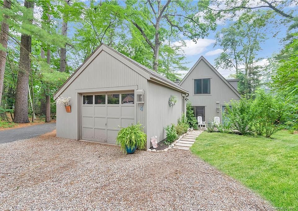 Taking the 1 road in. Nestled in the quiet, comfortable and private community of Pond Place, on it's own cozy cul-de-sac, you'll find 4 Clover Court. Literal minutes away from The Shops at Farmington Valley. Even closer to several grocery stores, including Whole Foods across the street. This slice of paradise has so much to offer, don't let it pass you by! Upon entering, the kitchen will evoke the inner chef in you; with plenty of counter space, a natural gas range tucked into the kitchen island, and beautiful built-in wine racks to store your favorite bottles. The walk-in pantry under the stairs ensures you never run out of space. Admittedly, choosing where to enjoy your meals will be a difficult endeavour; between the 3 large scenic glass sliders on the first floor or the private back deck that outlooks into the peaceful wooded surroundings of 4 Clover. Upstairs contains 2 more bedrooms, a full bath and an incredibly convenient laundry room. The large, yet cozy, 16'x17' Primary bedroom has a large walk-in closet to fit any wardrobe. No matter what time of year, the natural gas central air and wood burning fireplace in the living room will keep you comfortable. Plenty of parking as well as your own 1-car detached garage. These are seldom available and one of the larger homes at 1,632 sqft.