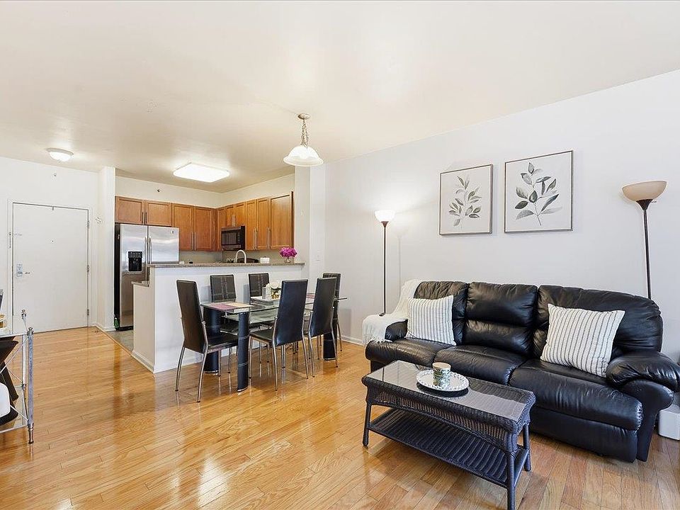Welcome home to this 2nd Floor, largest one bedroom condo with beautiful tree-lined views & private balcony with 811 square feet of living space!! Welcome to luxury living in one of the most sought-after waterfront communitiesa"Port Liberte! This exceptional 1 bedroom, 1 bath residence is bathed in natural light from multiple exposures, this open-concept home features a spacious living and dining area with hardwood floors, perfect for both entertaining and everyday comfort. The modern day kitchen is a chefas dream, complete with extensive granite counter space, abundant cabinetry & stainless steel appliances with gas cooking. The primary suite is a true retreat, with double windows and tree-lined views. The elegant bathroom features a sleek vanity with quartz countertop, complemented by a spa-inspired soaking tub and shower combo. Soft lighting creates a serene, luxurious retreat within your home. Laundry day is a cinch with your in-unit washer/dryer with extra storage space for your laundry essentials! Enjoy the elegance, privacy, and quiet of top-floor living along with one car garage parking. Enjoy all of Port Liberteas resort-style amenities (tennis/basketball courts, infinity pool with NYC views, garden areas), and close proximity to vibrant waterfront paths, shops, and NYC transit. Easy access to the NY Waterway or the Port Liberte Shuttle to the Grove St. PATH, makes your NYC commute for work or play a cinch! This is more than just a rentala"it's a lifestyle. Donat miss this one-of-a-kind opportunity to live in luxury by the waterfront. NO PETS. Book your private tour today!