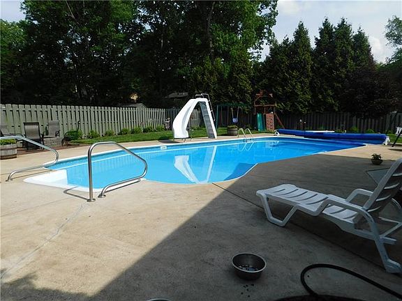 Cedar Shake vinyl siding gives charm & appeal to this 3 BR, 3 bath home in Hempfield Twp. You will feel like you are always on vacation sitting around your 18x40 heated in-ground pool w/slide & diving board. 3'-9'deep. Privacy fence, patio & fire pit complete the setting. Entertainment space continues into your attached finished garage equipped w/kitchenette. Black granite accents the light cream solid wood cabinets in the kitchen. Tongue & groove 3/4 hardwood floors throughout. Gas log fireplace. Master BR en-suite w/private 6x12 balcony, full bath & walk-in closet. New roof, furnace AC, windows, & doors.
