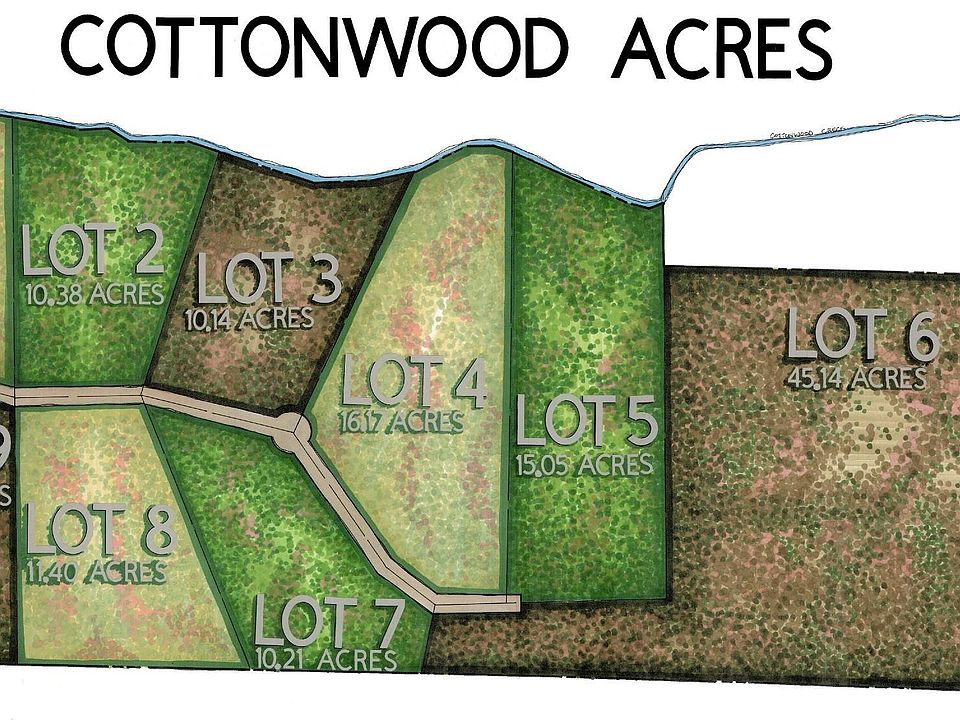 Discover your perfect escape on this 16+ acre lot featuring rolling hills and a serene setting that borders the peaceful Cottonwood Creek. Tucked away for privacy and seclusion, yet conveniently located just off a paved road, this property offers the best of both worlds ~ easy access and tranquil country living. Whether you're dreaming of building your custom home, starting a hobby farm, or simply enjoying wide-open spaces and natural beauty, this land is full of potential. Mature trees and gentle topography create a picturesque landscape that's hard to find. Enjoy the peace, privacy, and endless possibilities ~ your country retreat awaits!