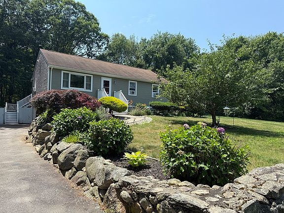 SPACIOUS THREE BEDROOM RANCH !!! Enjoy the country feeling of this quality three bedroom two full bath Ranch on 1.52 Acre lot! Set in a quiet culture-de sac, the house features a large living room with vaulted ceiling, a dining room with sliders to the rear Trex deck, kitchen with granite countertops and breakfast bar, and a full bathroom with a tub shower. The primary bedroom has its own private bathroom with a shower. There is plenty of room in the partially finished basement and a two car garage with automatic overhead door. Great location combines peace and quiet with deck and patio in your private backyard with easy access to Route 140.