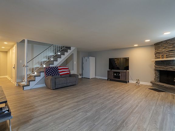 Fully finished basementUpdated half bathOpen-concept layoutAmple cabinetryStainless steel appliancesWhirlpool tubCustom built-in shelving