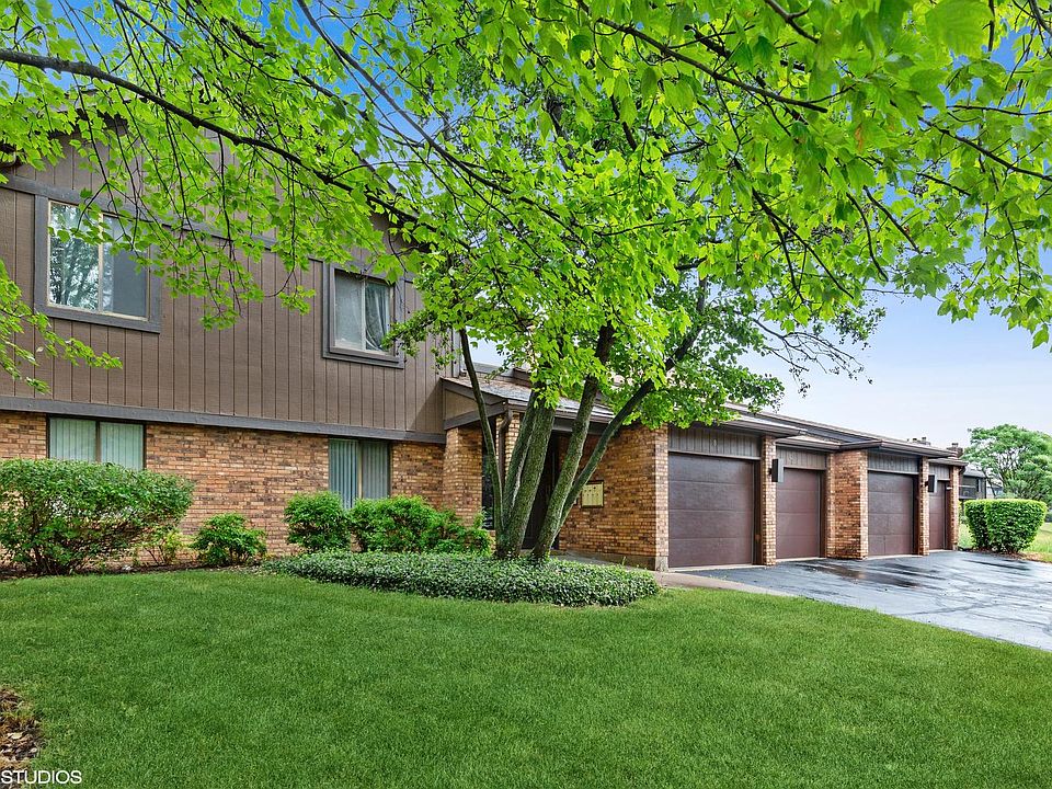 First floor end unit with three bedrooms and two full baths. Living room with corner fireplace and sliding glass doors to concrete patio, formal dining area. Eat in kitchen with white cabinetry and built in desk. Newer appliances, and newer vinyl clad sliding glass doors to patio. Master bedroom with en suite bath and walk in closet. Newer waterproof wood grain vinyl plank flooring in living room, dining room, kitchen, hall and master bedroom. Crown molding in living room, dining room, hallway and master bedroom. 1st floor laundry with newer Maytag washer & dryer. Newer GFA furnace, newer energy efficient double pane vinyl clad windows, attached extended garage with storage shelves. Convenient location close to Big Timber Metra Station, Advocate Sherman Hospital, Randall Rd corridor and I-90 access. Unit cannot be rented and is not eligible for FHA/VA financing, condo is being sold "as is" to settle estate. Sentrilock is on gas meter on the right hand side of the garage.
